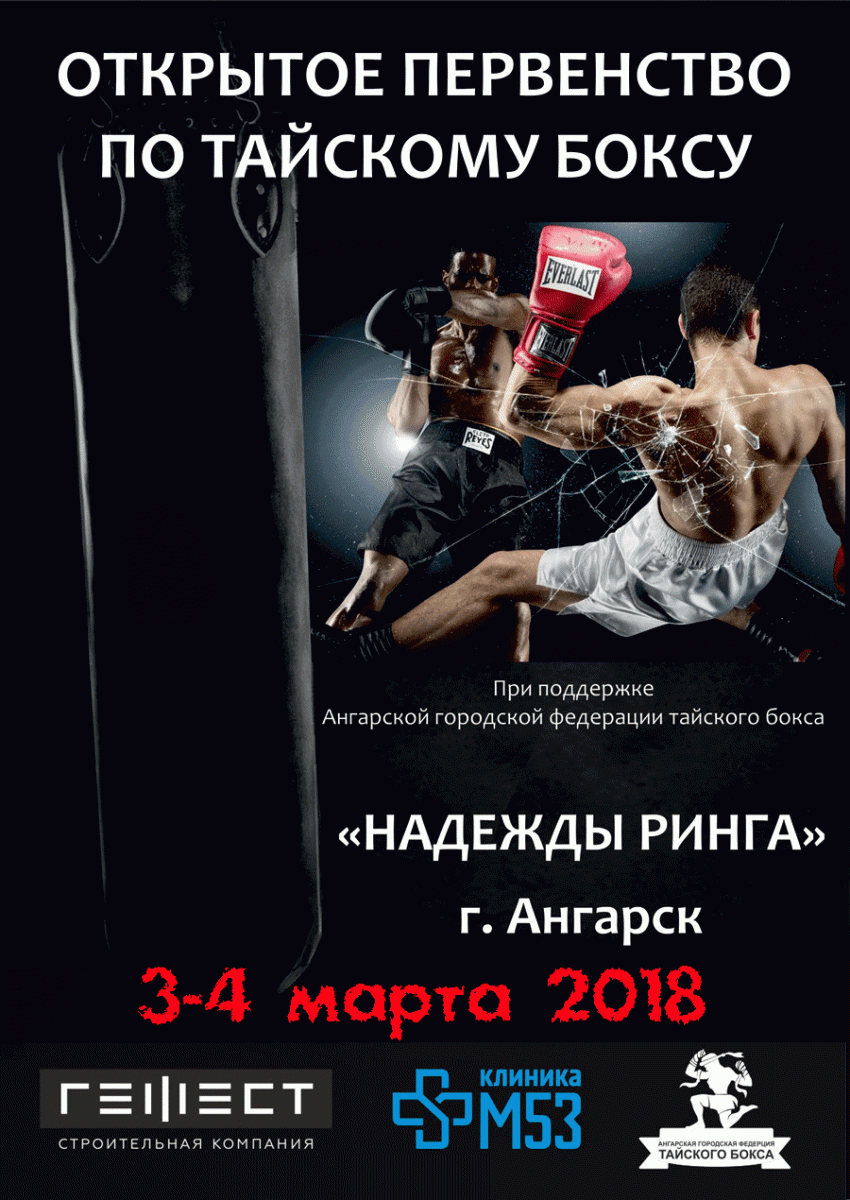 3-4 марта в Ангарске состоится традиционное ежегодное открытое первенство по тайскому боксу "Надежды ринга". В соревнованиях примут участие более 100 спортсменов из Ангарска, Иркутска, Усолья-Сибирского, Братска, Усть-Кута. Начало соревнований: 3 марта - с 13:00, 4 марта (финалы) - с 10:00. Место проведения: 8 микрорайон, спортзал школы №5. Вход для зрителей свободный.