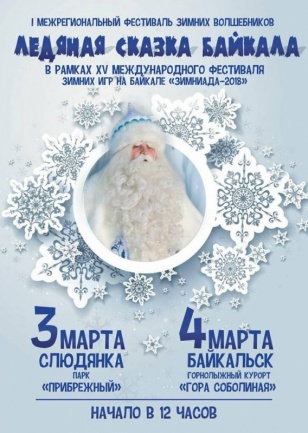 Фестиваль зимних волшебников «Ледяная сказка Байкала» пройдёт 3 и 4 марта в Слюдянском районе. На праздник приедут российский Дед Мороз, Тол Бабай из Удмуртской Республики и Белый старец Сааган Убген из Бурятии. Более подробно узнать о программе фестиваля можно ЗДЕСЬ.