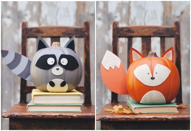 Если у вас есть дети, то они будут в восторге от таких поделок. Можете сделать им сюрприз или же заняться совместным творчеством. Сначала тыква покрывается базовым цветом (но если делаете, например, лису, то это не обязательно - она и так «рыжая»), а после просто даете простор фантазии. Все элементы крепятся на клей, это может быть цветная бумага или же ткань. Добавьте к этому бусинки-глаза и носик - и ваш зверек готов, на радость детворе.