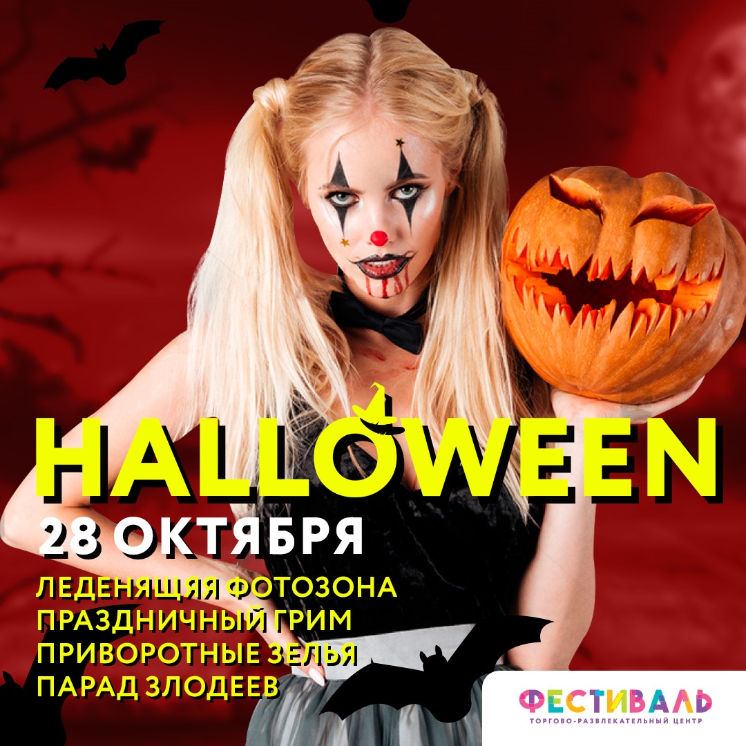 Halloween в ТРЦ «Фестиваль» уже 28 октября! В этот день с 10:00 гостей ждет множество ужасно-захватывающих развлечений: мастер-классы по карвингу из тыкв, школа зелье варения и мистически-крутая фотозона для страшных селфи. А ещё у нас пройдёт настоящий парад злодеев. Станьте суперзвездой дня и приходите на праздник в костюме!