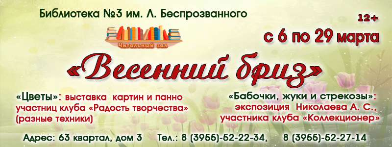 16 марта в 14:00 Дворец ветеранов "Победа" приглашает на концерт "Весна идет, весне дорогу" поэтов и певцов из города Усолье-сибирское: Валерия Туровца, Татьяны Володиной, Анатолия Маринича. Билеты на вахте ДВ «Победа».
