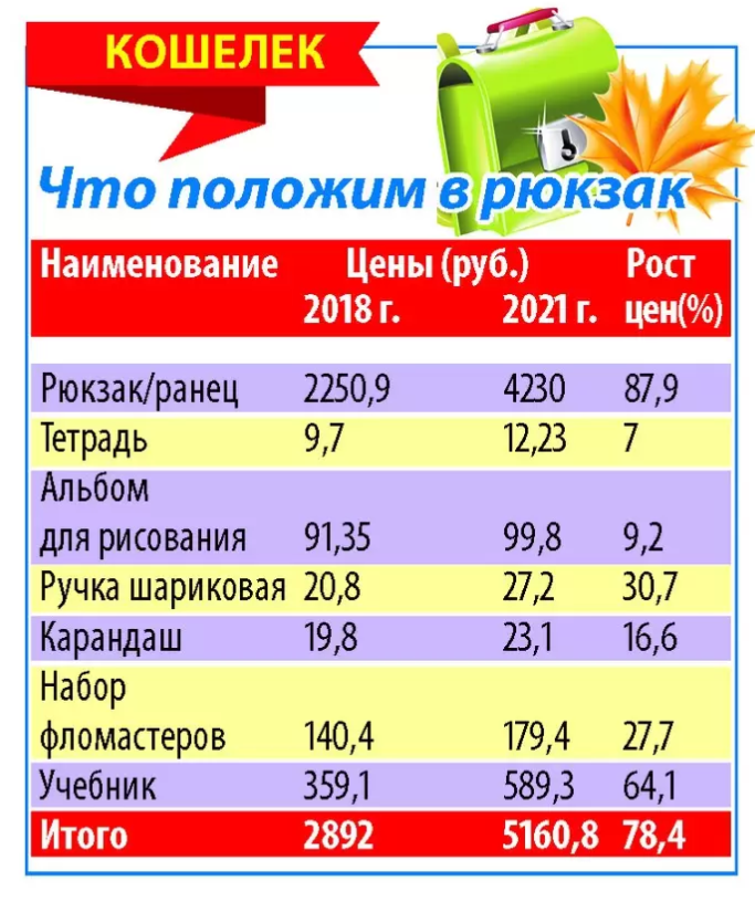 Смотрим таблицу! Каково? Конечно, расходы надо поделить напополам, если у вас только один школьник. Но рост цен за какие-то три года все равно впечатляет.