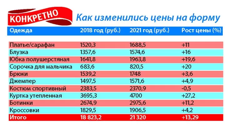 Сравниваем цифры. За три года общая стоимость одежды выросла на три тысячи рублей. А канцелярии — сразу на 2 тысячи ( но это потому, что подорожала средняя стоимость рюкзака).