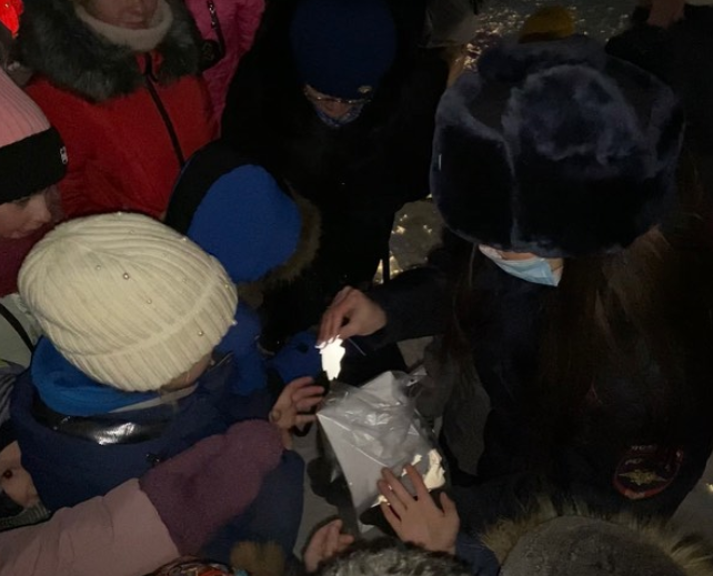 Полицейские поздравили ребят с наступающим новым 2022 годом, пожелали провести каникулы безопасно и вручили световозвращающие наклейки для одежды.