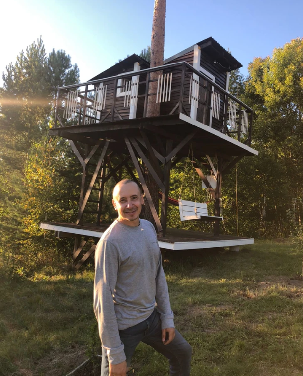 - Начали подыскивать варианты. И вот приезжаю на это место, и вижу, что прямо посреди участка возвышается великолепная 15-метровая сосна. И все, паззл сложился! Я сразу же решил ее под что-нибудь нужно приспособить. Какую-нибудь тарзанку на ней соорудить или тот самый домик на дереве! – вспоминает Иван Шмелев, хозяин участка.
