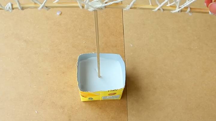 Коробку из-под молока или сока обрежьте, на дно налейте разведённый гипс. Установите поделку, дождитесь затвердевания гипса. Затем удалите коробку.