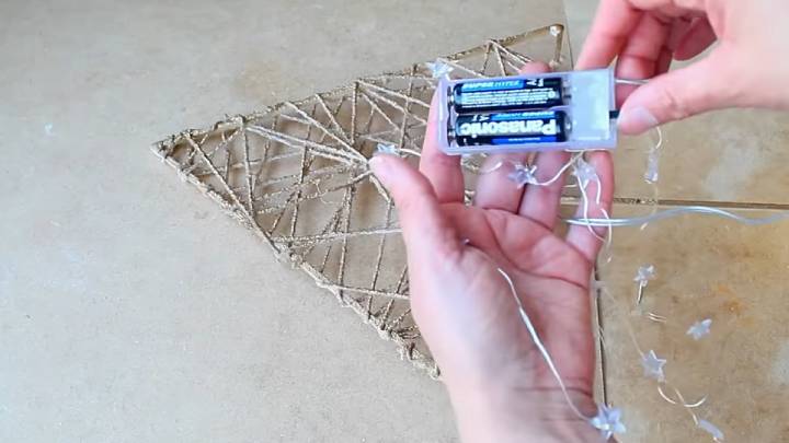 Покрасьте поделку в золотой цвет и оберните гирляндой на батарейках.