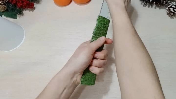 Получившуюся ленту из пряжи приклейте, начиная со дна конуса.