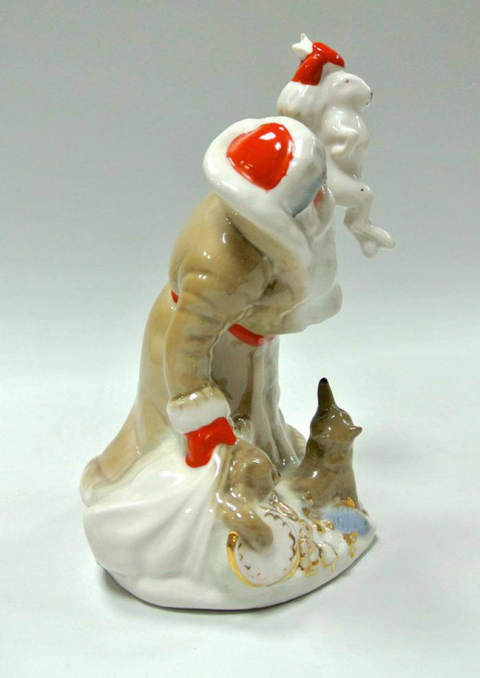 Фарфоровая статуэтка Деда Мороза (с двумя зайцами и мешком подарков) высотой 35 сантиметров, которая выпускалась в начале 1960-х годов на Ангарском керамическом заводе, нынче оценивается в 100–150 тысяч рублей. А редкие довоенные фигурки и фигурки военного времени из папье-маше оцениваются на уровне 100 тысяч. Некоторые из них довольно оригинальные: Дед Мороз одет в жёлтую шубу, а на голове у него шапка-ушанка.
