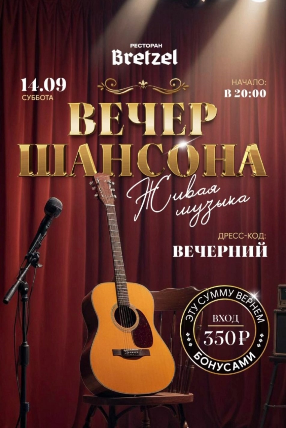 Уже в эту субботу, 14 сентября - вечер шансона в ресторане Bretzel!
