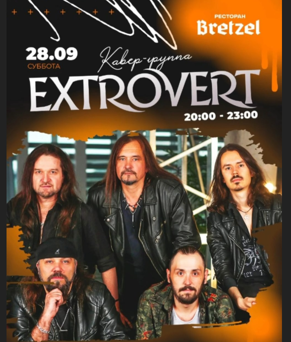В эту субботу в ресторане Bretzel вас ждет невероятный вечер с кавер-группой "Экстроверт"! Они зажгут танцпол своими хитами, а вы насладитесь уютной атмосферой и вкусными блюдами.