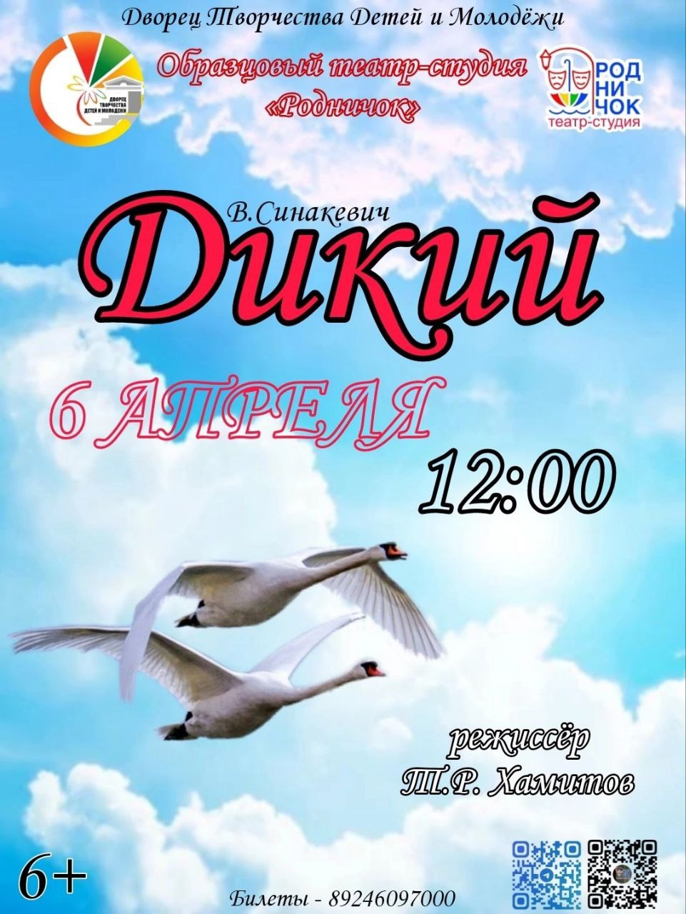 Театр «Родничок» приглашает в 12:00 во Дворец творчества детей и молодежи на спектакль «Дикий» – историю о свободе, поиске себя и силе духа. Вас ждёт глубокий сюжет, яркие персонажи и потрясающая игра актеров! Спектакль по сказке Г.Х.Андерсена "Гадкий утёнок"