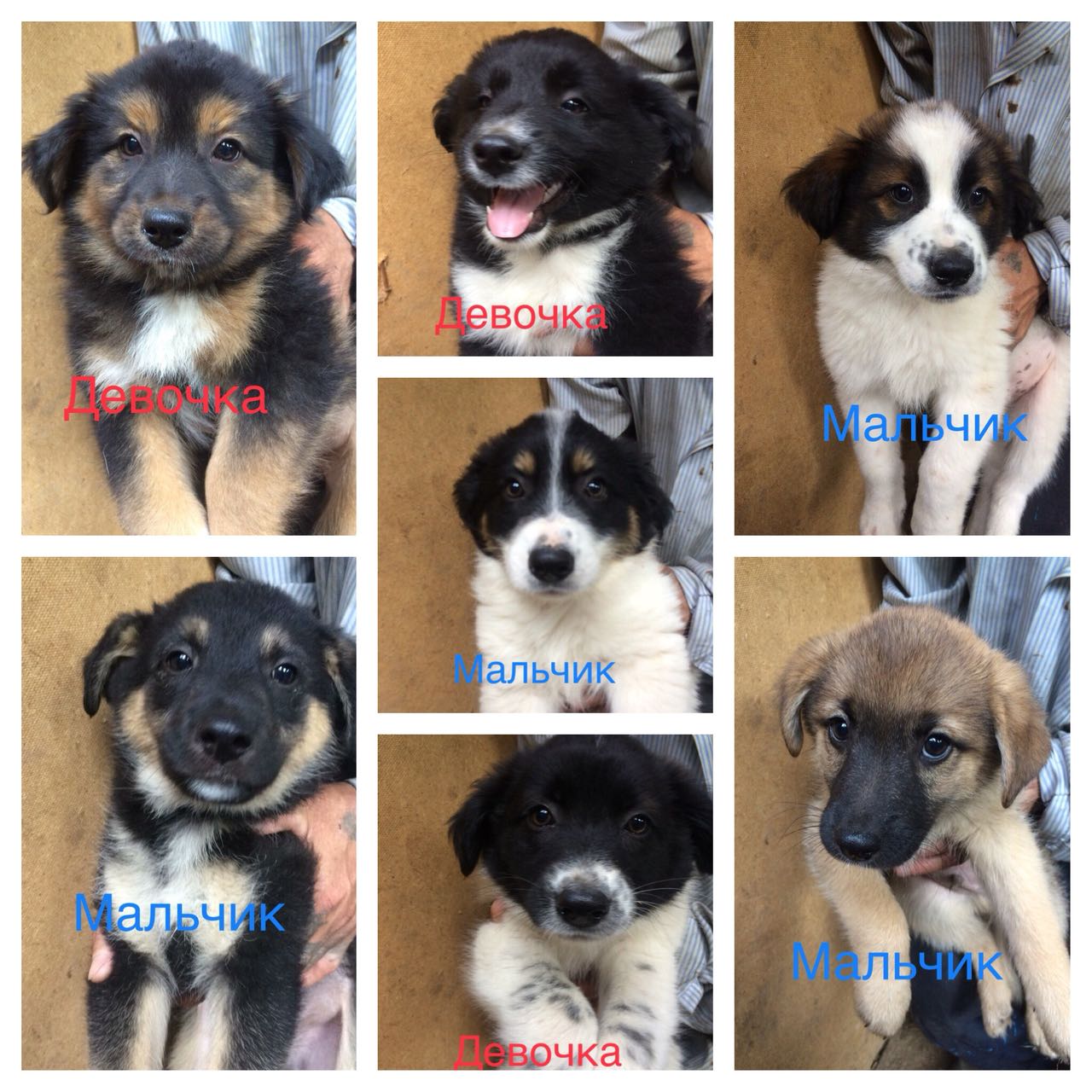 Это щенки-подростки 6 мес. Их не удалось пристроить когда были еще маленькие. Братик уехал домой, а 2 девочки остались. Очень нуждаемся в помощи для стерилизации этих девочек.