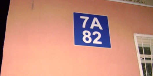 справа от входа, на заборе, черным маркером, расположен вертикально, с пяти метров не видно, размер одного знака кода - не более 2см. Цифры кода 8 и 9.