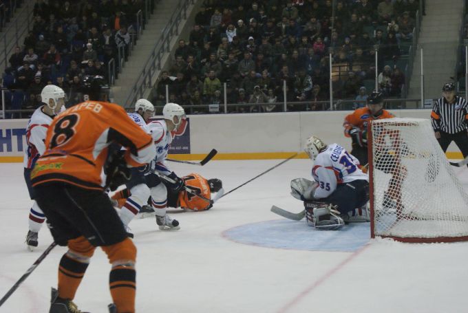 Игра выдалась очень напряженной, как для игроков, так и для болельщиков. Зрителям, приученным за последние пару матчей к быстрым голам на первых одной-двух минутах, ох как хотелось поскорей увидеть забитые шайбы! Первой «банки» в ворота противника от «Ермака» пришлось ждать целых семь с половиной минут чистого игрового времени! Но уже через шесть минут, после удаления наших, гости сравнивают счет. На перерыв команды ушли со счетом 1:1, а ангарские болельщики - взволнованные беспокойством за результат игры. Ведь привычного по двум последним матчам комфортного задела уже после первого периода не было.