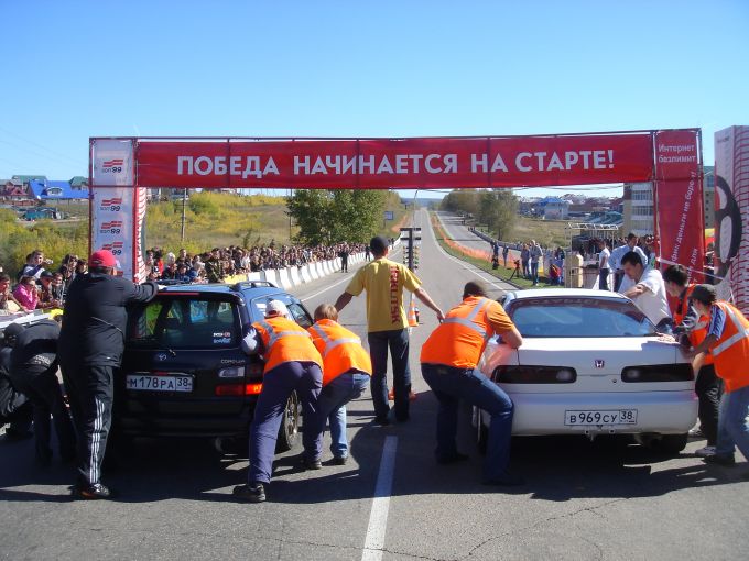 Заезды проходили на объездной дороге вдоль аэропорта, по направлению Иркутск - Листвянка, на встречной полосе. Не знаю, как для других зрителей столь грандиозного по меркам нашего региона автомероприятия, но для меня это было сродни какому-то чуду. Действительно, как в кино: «мускулистые» «прокачанные» тачки, грозно «рычащие» друг на друга у невидимой человеческому глазу электронной отсечки старта, громкие комментарии ведущих под фон рвущегося из колонок r'n'b и хип-хопа и трасса, расположившаяся под удобным углом, как экран телевизора… Складывалось ощущение, что ты на съемках одного из «Форсажей», к примеру!