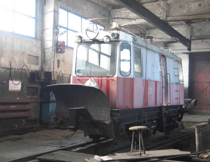 С-3 - самый старый вагон из имеющихся в ангарском трампарке. Он никогда не перевозил пассажиров, потому что предназначен для очистки путей от снега. Спереди и сзади у него расположены большие щетки, благодаря чему ему не нужно разворачиваться - он может ездить в обе стороны.