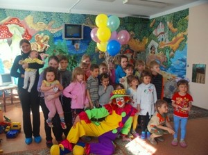 Веселые клоуны играли с ребятами, загадывали им загадки, дарили им подарки – альбомы, фломастеры, карандаши и воздушные шары, а также открытки-улыбки, сделанные учащимися школы-интерната № 7.