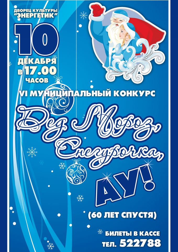 Ждем вас на IV муниципальном конкурсе "Дед Мороз, Снегурочка, АУ!" (60 лет спустя)!