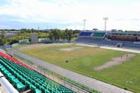 Центральная арена наполовину выстрижена и вытоптана, наполовину покрыта зарослями густой травы. Вряд ли кто-то назовет это нормальным газоном, достойным центрального стадиона 250-тысячного города. Беговые дорожки, выложенные из прогнувшихся от времени резиновых плит, давно нуждаются в замене и желательно на современное покрытие, если уж мы смеем мечтать о каких-то высоких достижениях наших легкоатлетов.