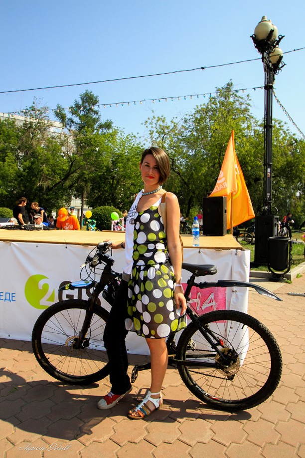 — «Леди на велосипеде — 2015» запомнится мне на всю жизнь по многим причинам. Во-первых, это мой самый первый велопарад в жизни. Во-вторых, мне с моим молодым человеком удалось победить в номинации «Самая очаровательная пара». Мы получили приз от гостиницы, которая расположена в Листвянке. О событии узнали случайно, по радио. Сразу загорелись идей и начали придумывать образы. Я перебрала весь гардероб, в итоге остановилась на образе ангела. Под белое платье — шили, кстати, сами, правда изначально для другого торжества — подобрала венок, крылья и удобную обувь. Столько очаровательных девушек сразу я еще не видела, наверное, нигде. Все улыбались друг другу, были доброжелательны, — делится впечатлениями Вероника Рожнева.