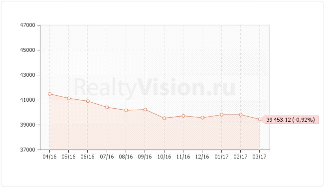 В марте 2017 года средняя цена квадратного метра на недвижимость Ангарска составляла 39453.12 руб./кв.м. По сравнению со значением в феврале 2017 года цена уменьшилась на 0,92%.