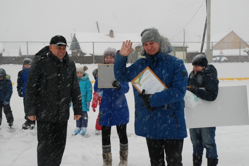 Руководитель Ангарского городского округа вручил благодарности активным жителям села, которые способствовали скорейшему открытию корта и подарочный сертификат на приобретение клюшек для хоккейной команды «Одинск».