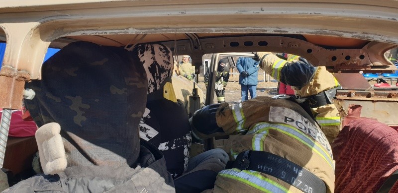 В скорости и грамотности выполнения необходимых действий по спасению участников условного дорожно-транспортного происшествия состязались 7 команд пожарных и спасателей.