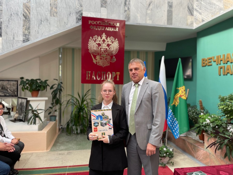 Сергей Петров поздравил ребят со знаковым событием – получением паспорта: «Вы становитесь гражданами великой державы. В основе патриотизма – уважение к стране, флагу, гимну, окружающим, семье, самим себе. Сегодня вы находитесь на определённом рубеже ответственности, которая будет возрастать год от года. С Днём знаний! Любой человек, который ставит перед собой цели, постоянно чему-то учится. Успеха, упорства, достижения целей, пусть у вас всё получается, пусть вами гордятся родители! А это событие останется в вашей памяти!».