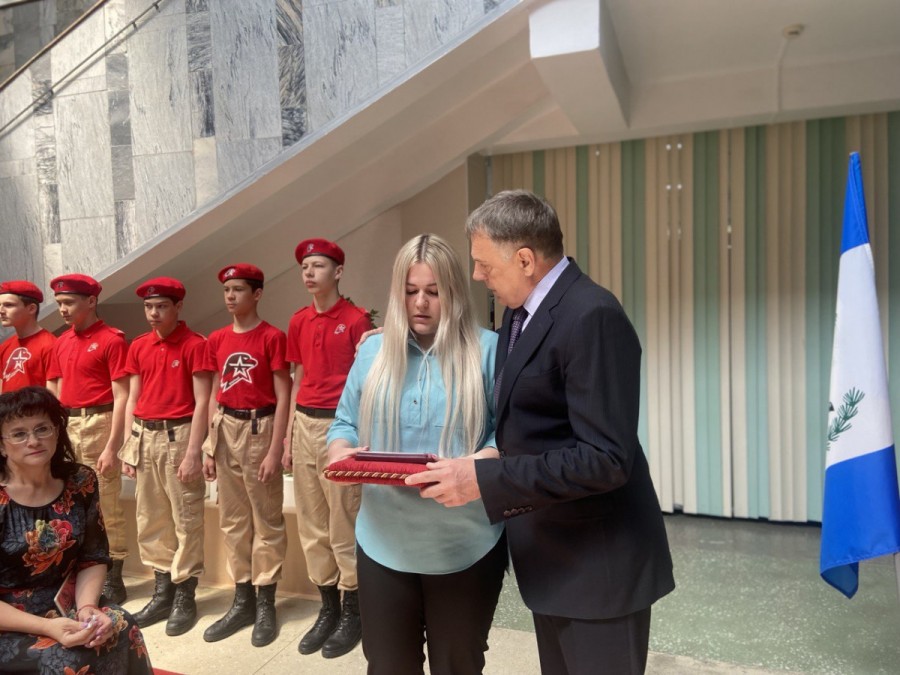 Константин Икерт погиб в октябре прошлого года. У мужчины осталась маленькая дочка. Орден супруге героя, Оксане, вручил мэр Ангарского округа Сергей Петров.