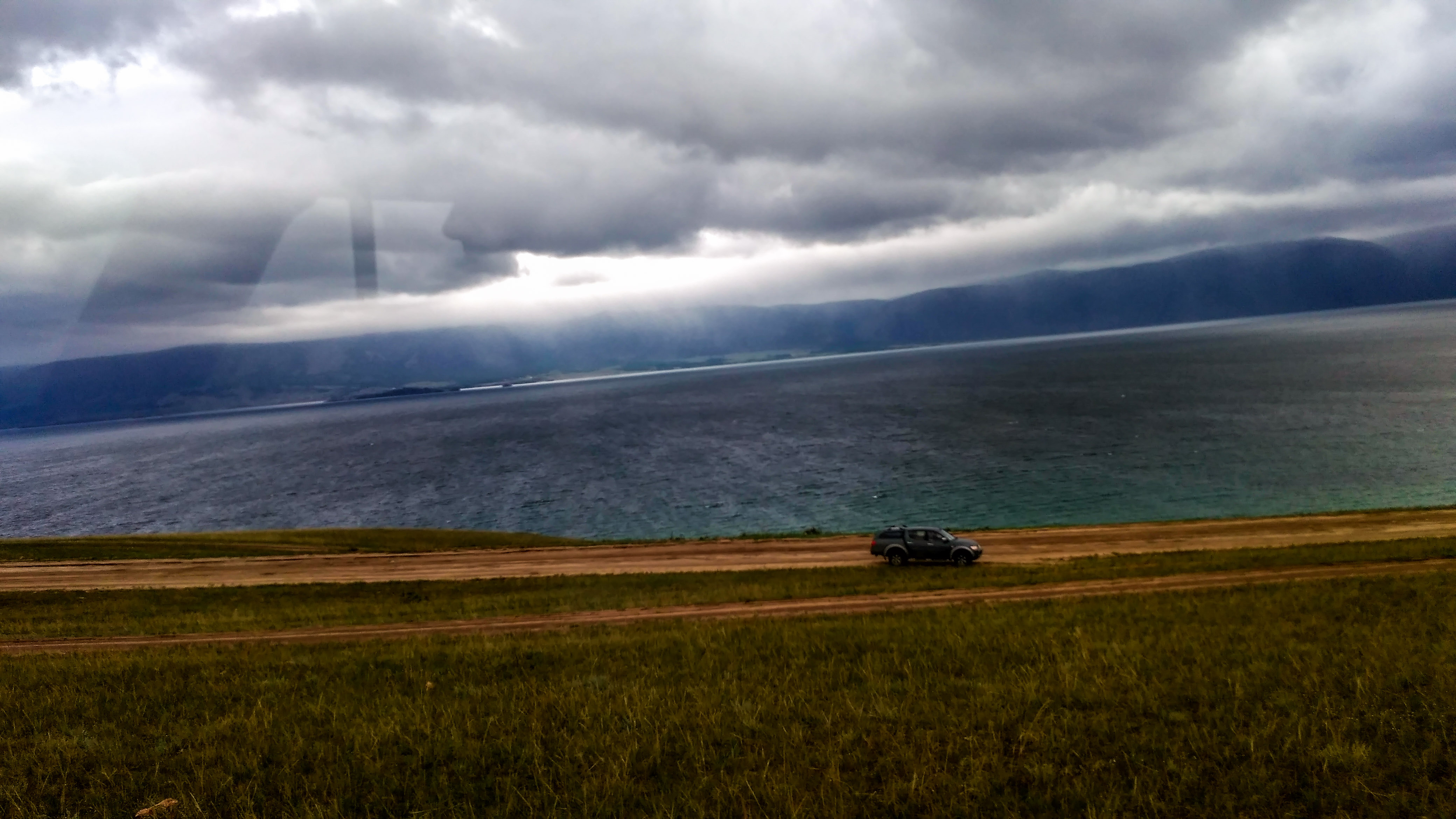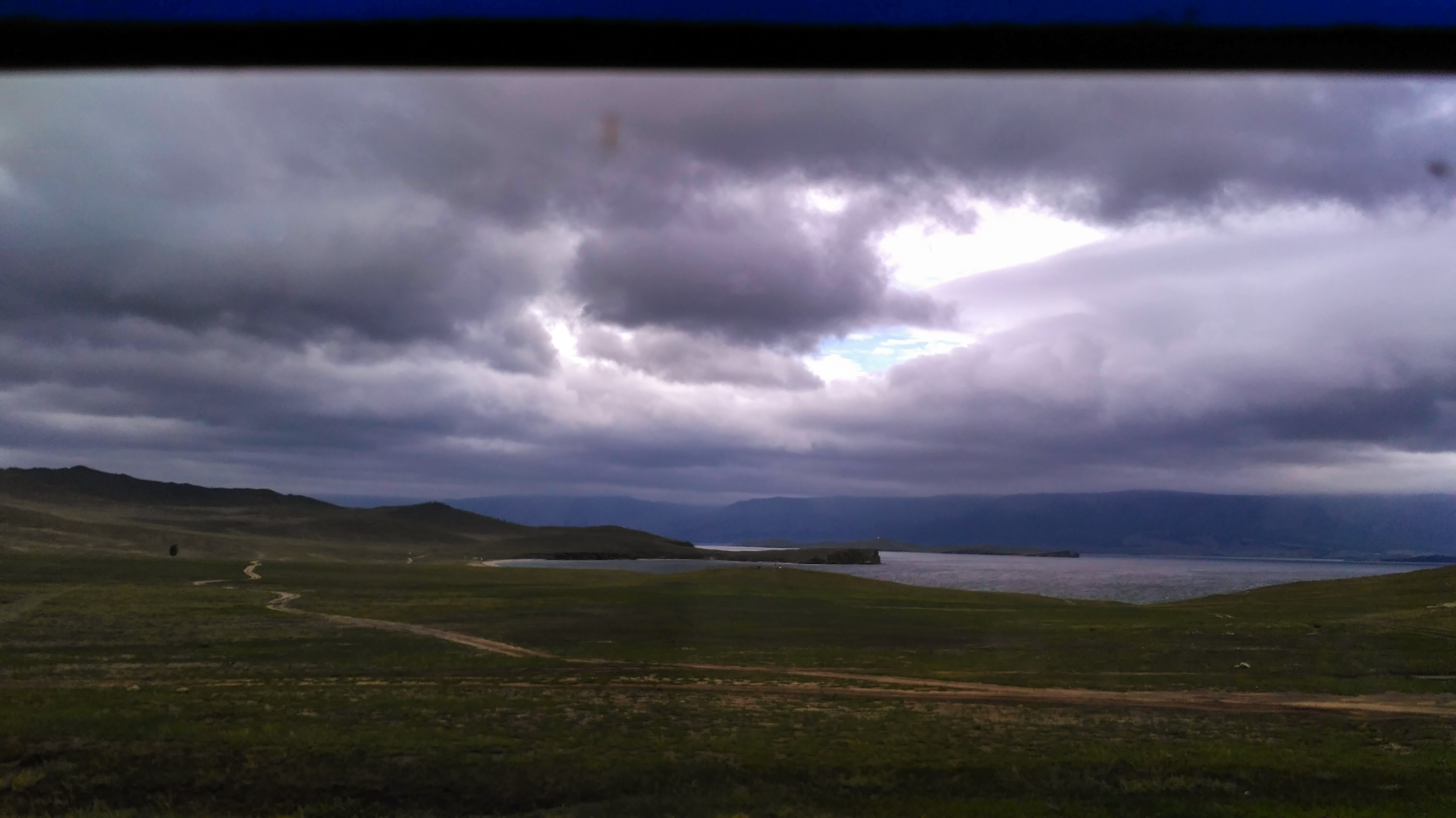 Предлагаю и вам восхититься этим сумрачным небом, суровым Байкалом, зеленым Ольхоном и оранжевой дорогой.