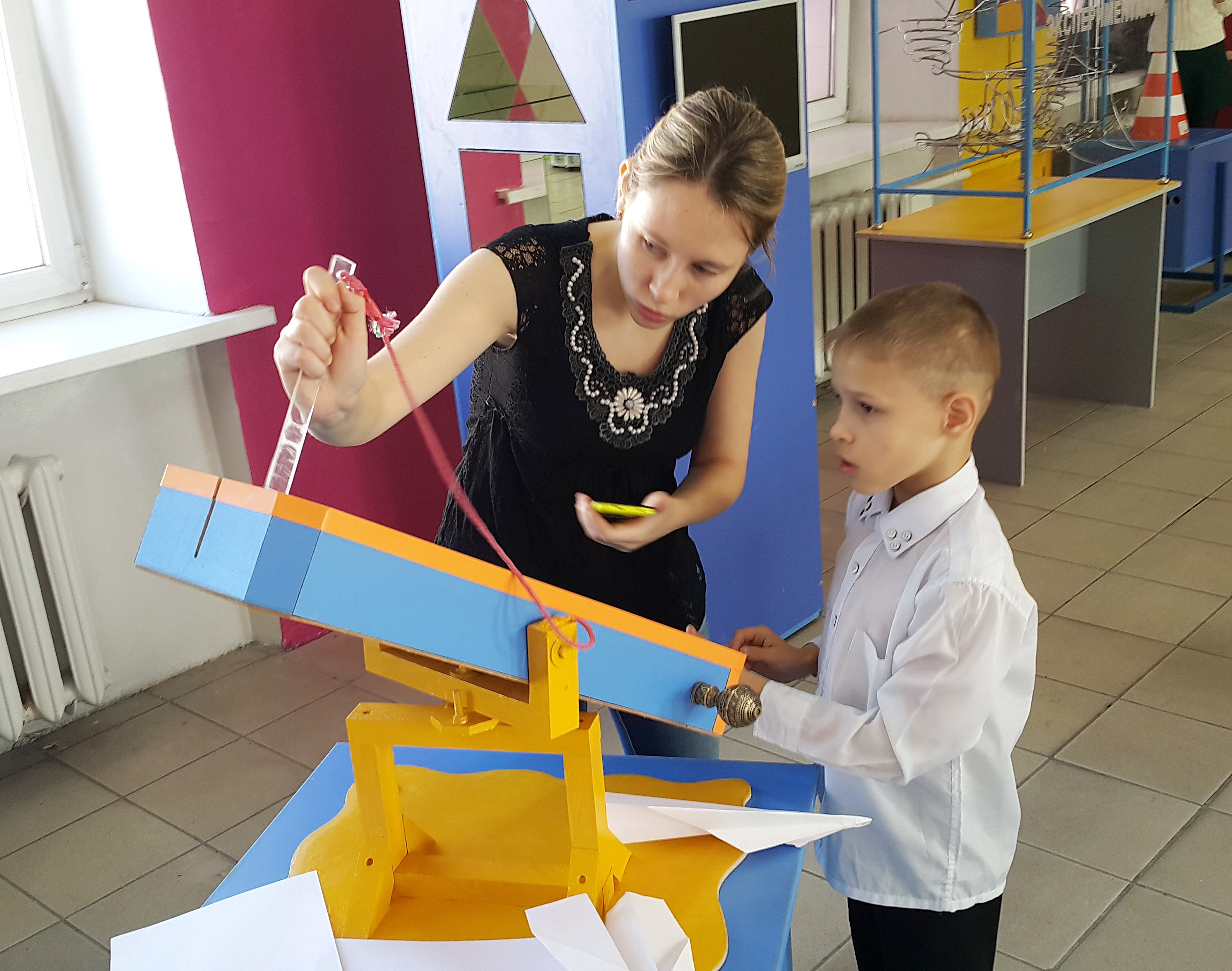 Живой интерес к экспонатам выставки проявляют не только дети – пришедшие с ними родители, бабушки и дедушки радуются не меньше, и сами с удовольствием все испытывают на себе.