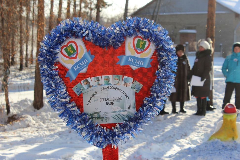 Операционный блок стационара представил две снежных скульптуры медсестры и врача и поведали историю о том, как сложно найти свою вторую половинку и что многие семейные пары складываются уже в стенах больницы. Закончили они свое выступление задорными частушками.