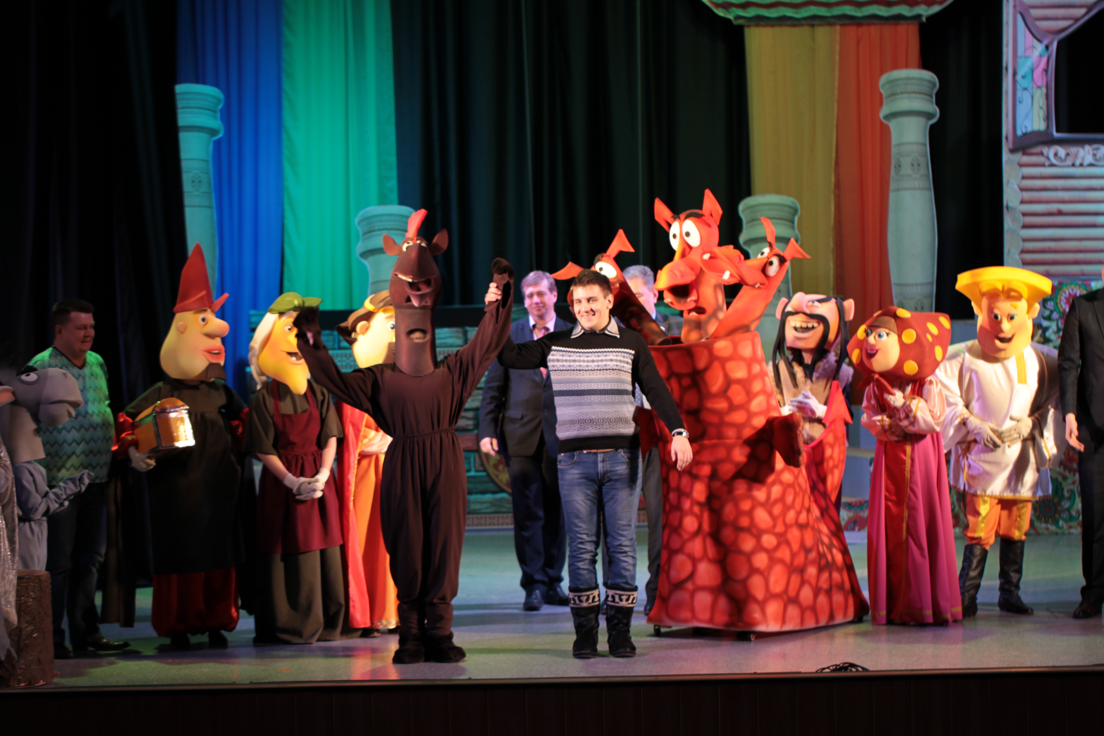 Уникальное представление подготовил "Театр Масок" и ДК "Энергетик". За несколько месяцев до Нового года началась подготовка к празднику: был написан уникальный сценарий художником-постановщиком и сценаристом театра Вячеславом Прошиным. Режиссурой занялся бессменный Алексей Пермяков. Для участия в проекте пригласили известных людей Ангарска: Председатель Думы АГО Александр Городской (Князь), заместитель председателя думы АГО Артём Детышев (Алёша), директор МУП АГО "Ангарский водоканал" Александр Алексеев (Тугарин змей), начальник управления по культуре Андрей Трусов (Змей Горыныч), директор ангарского гордского музея Вера Павловец (бабуля Любавы), руководитель пресс-службы ХК "Ермак" Роман Караваев (дед Тихон), бард и шоумен Павел Скороходов (Колыван), ведущая утреннего шоу на "Русском радио" Наталья Демидова (Любава), шоумен Анатолий Кюрс (конь Юлий), учитель и актёр народного театра "Чудак" Сергей Метёлкин (Соловей-разбойник), главный специалист отдела по молодёжной политике Галина Митченко (баба-яга).