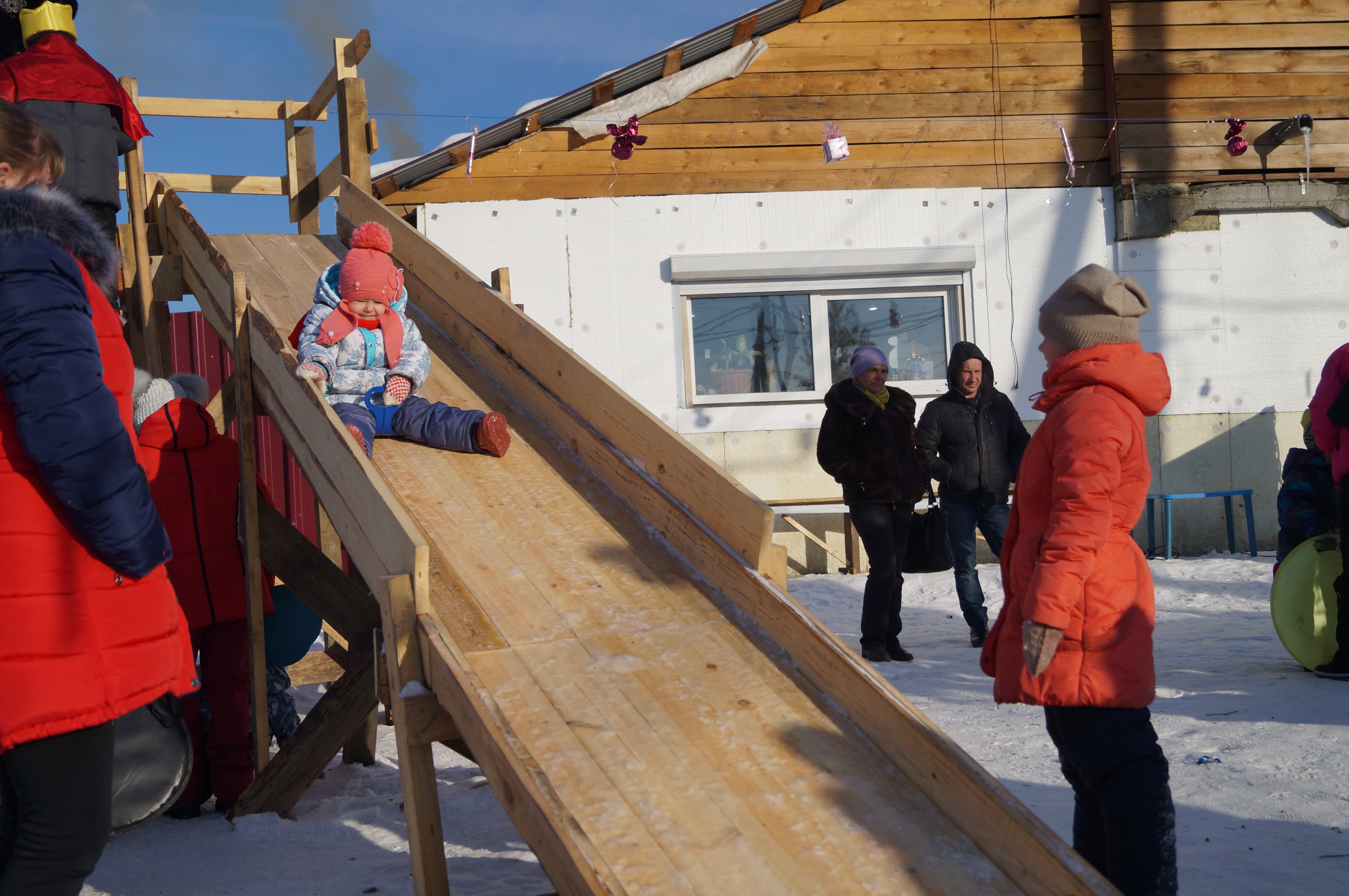 А если деревянную горку полить водой, по ней можно будет съезжать