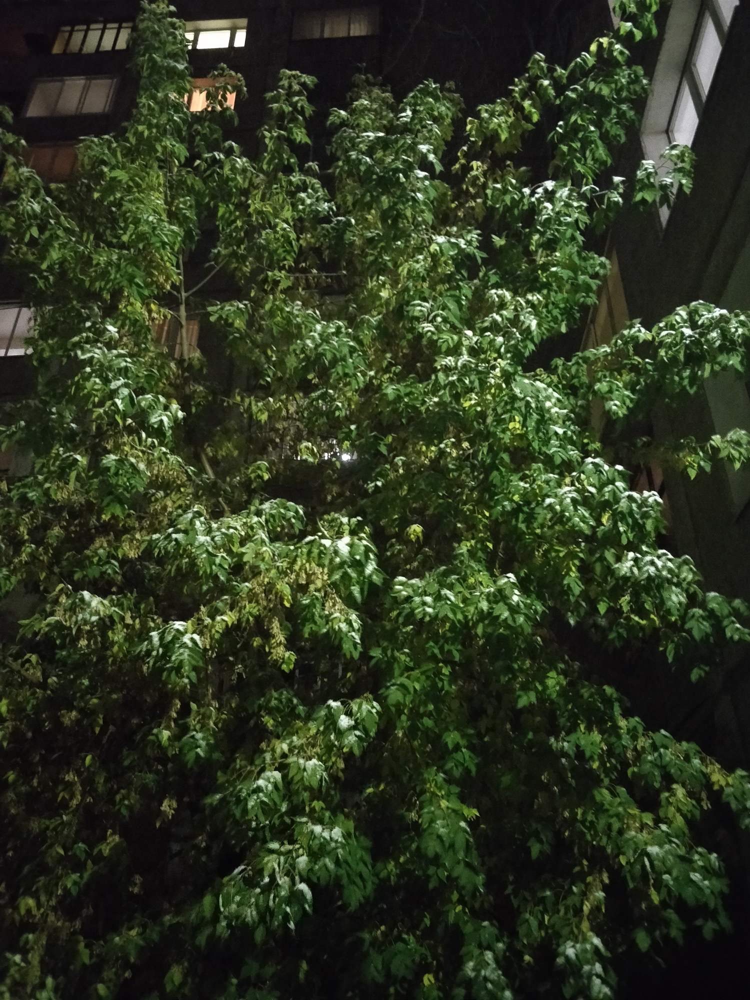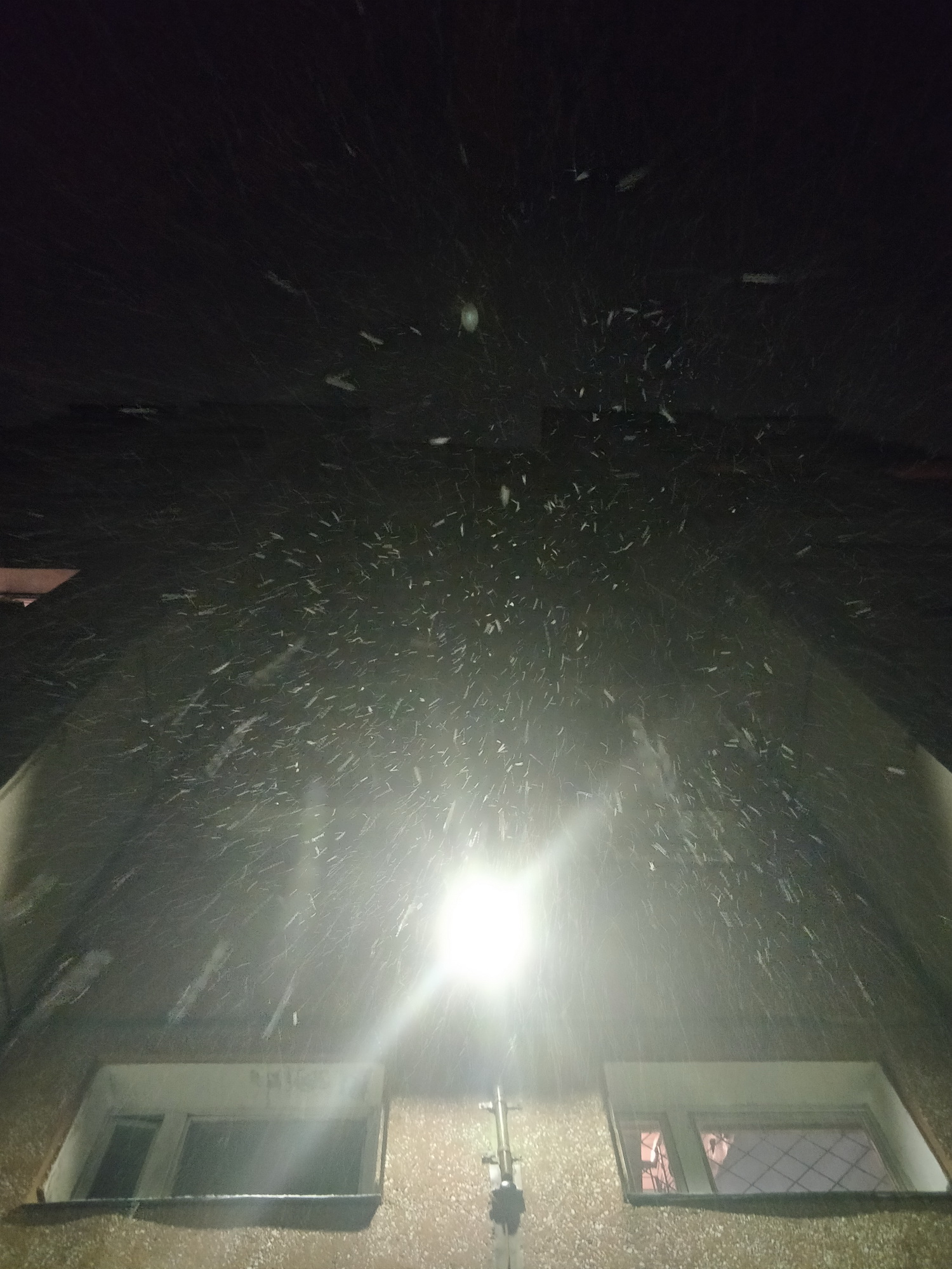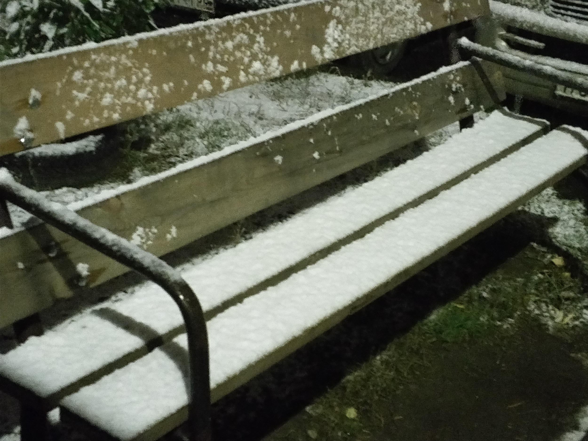 Какая-то моментальная метель)). Выглянула - совершенно спокойно за окном, но машины внизу стоят заснеженные.