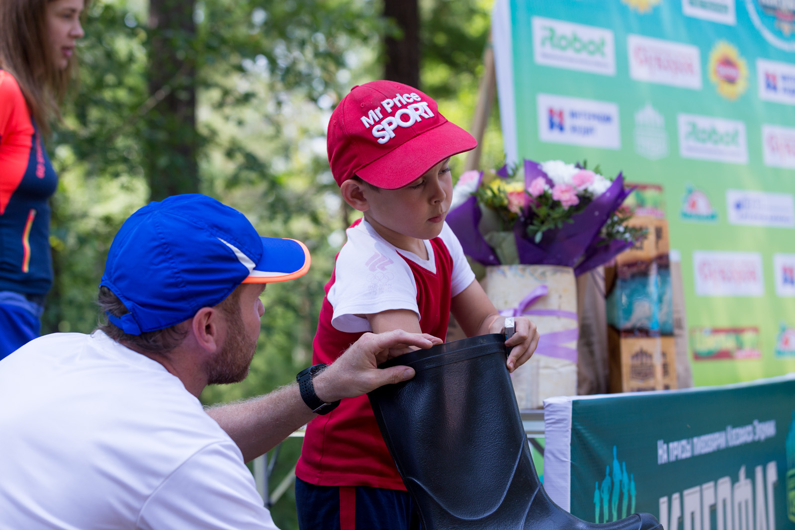 Пока взрослые занимались водно-бего-грязевыми процедурами, дети и гости забега не сидели без дела: играли в футбол, бадминтон, летающие диски и многое другое. Ну и конечно детский забег. Он хоть и называется "Детский", но на самом деле все по-взрослому: старт, финишная арка, крики болельщиков и подарки на финише.