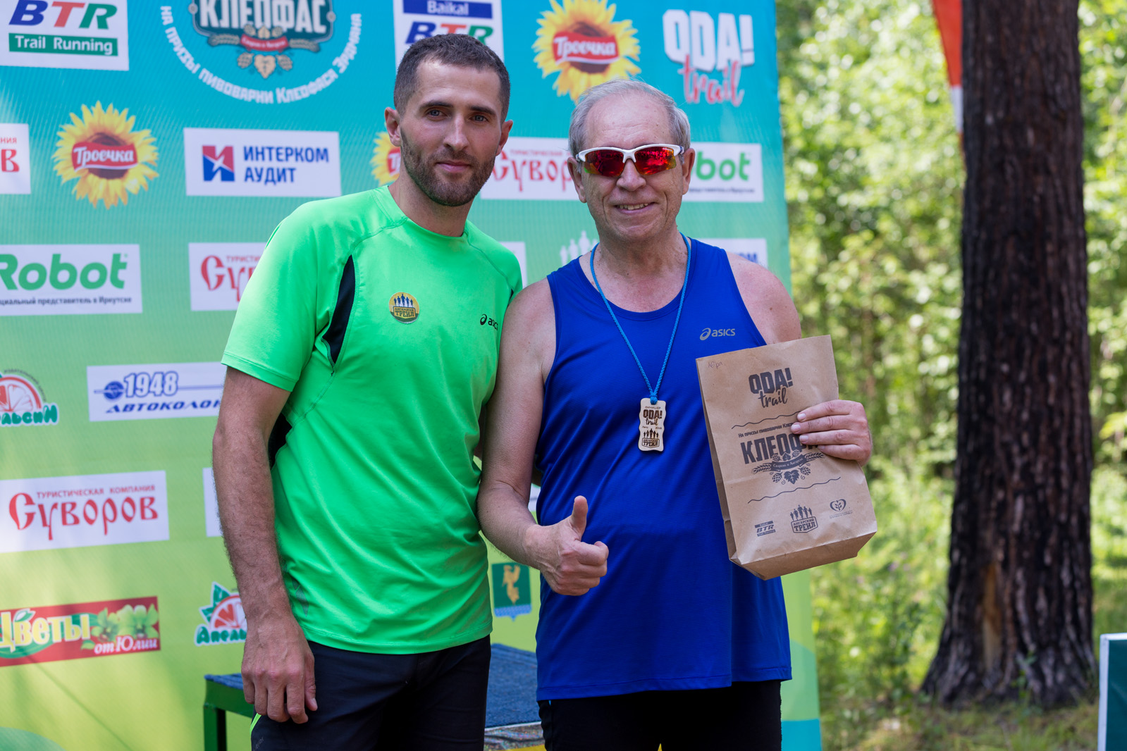 Все участники забега получили медали финишеров, а призеры подарки от пивоварни Клеофаса Эрдмана и других многочисленных партнеров забега. Победителям вручили уникальные кубки, изготовленные из двухсотлетней сосны и смолы мастером из Ангарска Михаилом Добрышкиным. Ну а после отдыхали, пили вкуснейший квас и делились эмоциями. Так же среди участников разыграли памятные сувениры от организаторов.