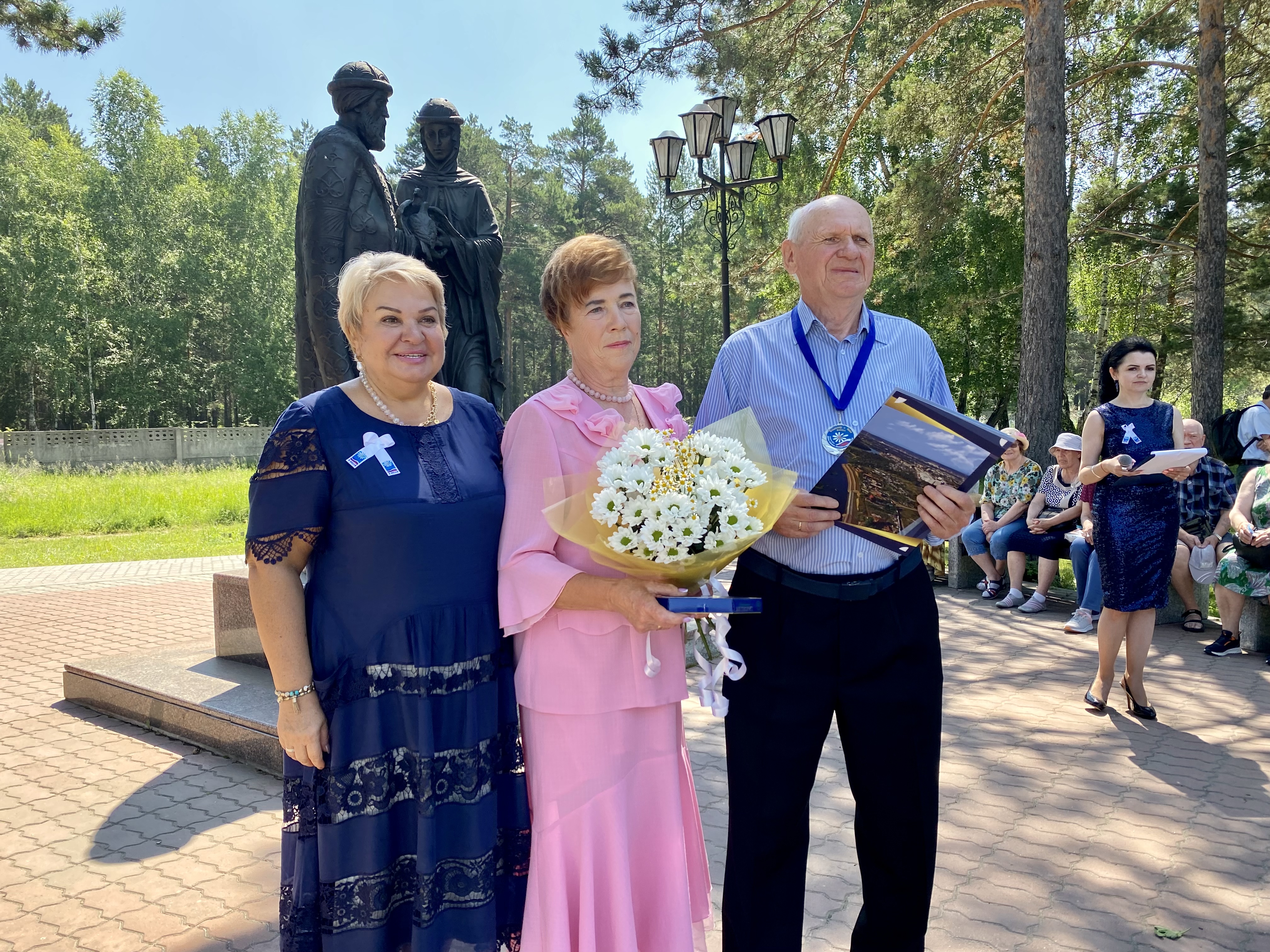 Возле памятника благоверным Петру и Февронии Муромским сегодня, 8 июля, чествовали тех, кто идет по жизни рука об руку, живет в любви и согласии много лет.