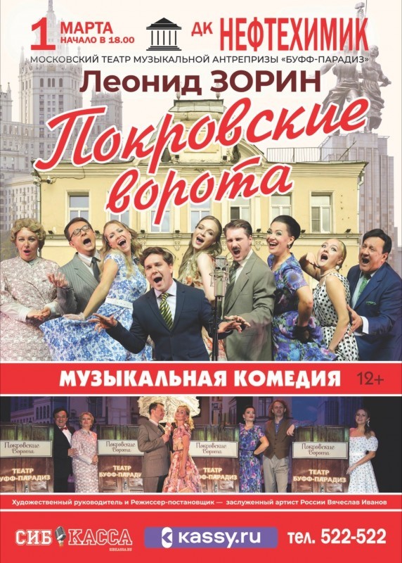 Московский театр музыкальной антрепризы «Буфф-Парадиз» представляет музыкальную комедию «Покровские ворота» по легендарной пьесе Леонида Зорина и сюжету одноименного и всеми любимого фильма Михаила Казакова.