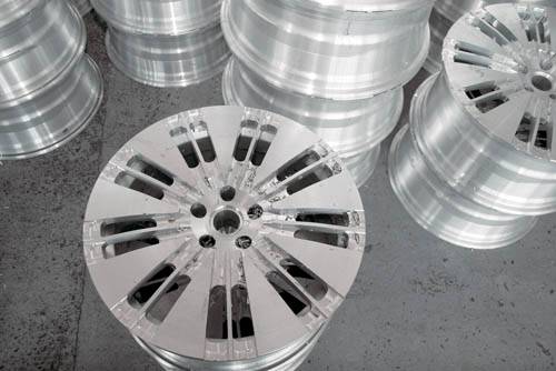Для дисков используется сплав типа АВ на основе алюминия с легирующими добавками магния, меди, меди, кремния и марганца. Он не только высокопрочен, но и пластичен. За рубежом аналог этого сплава обычно называют «авиационный алюминий 6061» (aircraft grade Al 6061). Готовую отливку – цилиндр диаметром примерно 20 см – режут на куски нужной длины (в зависимости от размера будущих колес), складывают в корзины и отправляют в кузнечно-прессовый цех.