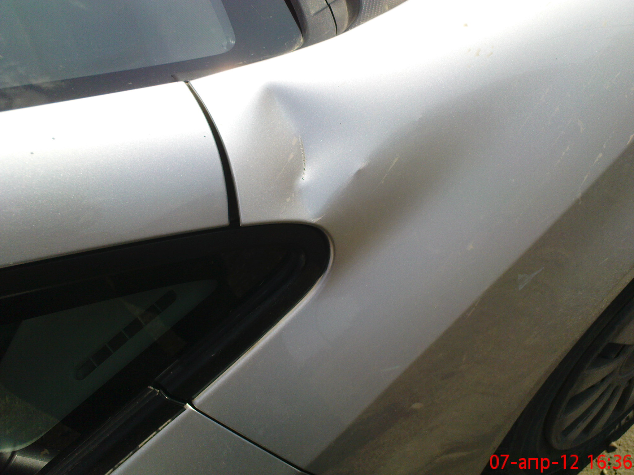 В итоге - вмятина на крыле с отслоением ЛКП. За устраненение (а это снятие, выправление, полная покраска крыла) просят круглую сумму.