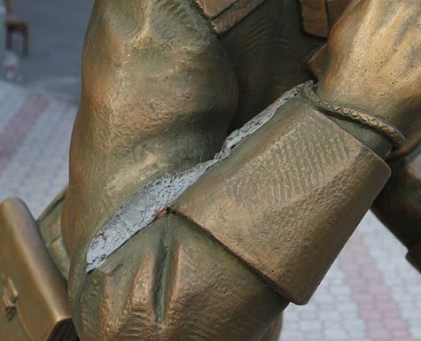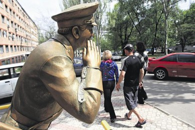 Менее двух недель смог выстоять против вандалов новый памятник «Раскаявшемуся гаишнику» в Донецке на проспекте Мира. На своем пожизненном посту железобетонный инспектор обосновался только 23 апреля, а вчера кто-то отбил и выкрал полосатый жезл из правой руки. На теле статуи остался лишь шрам.