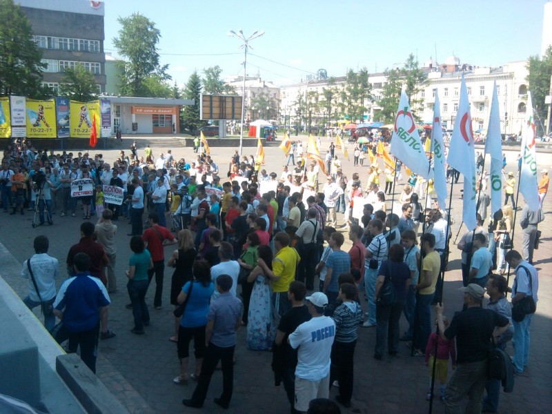 Сегодня, 3 июня, в Иркутске прошел митинг против повышения цен на бензин. Из ожидаемого минимума в 500 митингующих, на площади у стадиона Труд собралось около двух сотен человек, большая часть которых представляла оппозиционные партии.