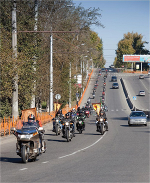 В третий раз в мероприятии участвует и байкер Феникс, в миру Дмитрий Прокофьев. Говорит, что единственной сложностью было проснуться в семь утра в воскресение. А так — душа требует, вот и поехал. — Мы должны быть достойны славы наших предков, — уверен Феникс. — Я крещен с семи лет, всегда хожу в церковь. Если долго не могу найти время и посетить службу, то потом что-то плохое происходит: или авария, или поломка мотоцикла. За семь лет езды я сменил девять железных коней, но не потому, что в аварии попадал. Просто люблю менять технику, пробовать что-то новое. Первые три года родители вообще не знали о моем увлечении, я прятал от них всю экипировку. А потом поставил их перед фактом, что все хорошо, я жив-здоров, катаюсь без аварий. Родные мне доверяют, тем более что знают: я не пью и не курю.