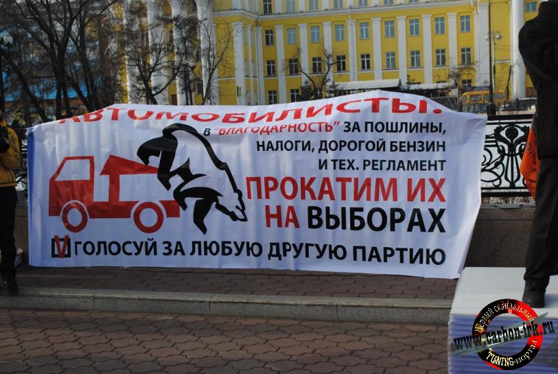 Яркую политическую окраску протесту придали и выступающие с трибуны: простые автомобилисты, депутаты, чиновники и представители бизнеса. Одним из первых выступал Романов А.В. член партии Единая Россия, которого периодически освистывала толпа, - сообщает на сайте carbon-irk.ru участник митинга, - Во время выступления одного из единоросов, один из автомобилистов вырвал его знамя и кинул к ногам выступавшего оратора.