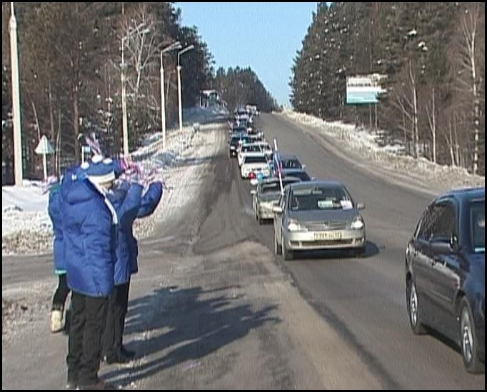 Свои машины владельцы украсили шарами, а также лозунгами в поддержку действующего сегодня в России курса власти. Колонна стартовала со сквера имени Кирова, проехала по центральным улицам и районам города. Финишировали участники акции в архитектурно-этнографическом музее "Тальцы".