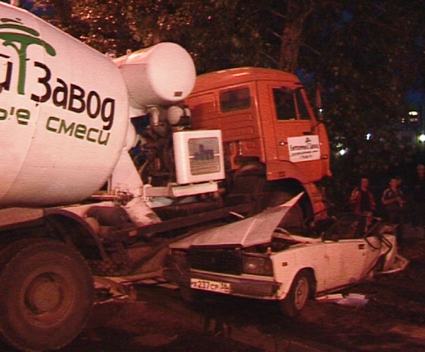 Трагедия произошла на объездной дороге микрорайона Первомайский минувшей ночью. КАМАЗ ехал по главной дороге, а Жигули - по второстепенной. Попытки избежать столкновения были тщетны, и бетономешалка буквально наехала на легковушку.