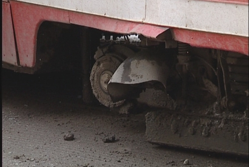 Кстати, от места падения колеса, до места аварии не малое расстояние, порядком 50-70 метров. Либо машинист попросту не заметил отвалившегося колеса, либо скорость была большой, но скорее всего и то и другое. Так как трамвай выходил из поворота то скорость должна была быть не большой. Колесо отвалилось сразу после поворота и скорее всего машинист начал набирать скорость, задняя ось или как там её у трамваев, сошла с рельс и задняя часть трамвая пошла в занос и протаранила встречный трамвай. На трамвай можно смело клеить наклейку дрифт а машинисту участвовать на БМШ. Хорошо что никто сильно не пострадал.