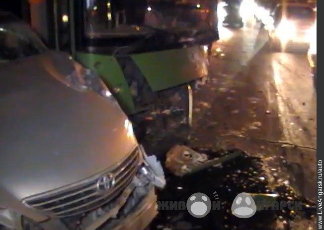 На Трактовой столкнулись рейсовый автобус и Тойота Камри (видео)